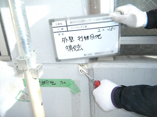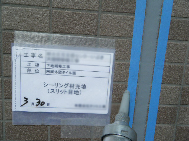 外壁に発生しているひび割れ(全部位)をシーリング補修後、タッチアップ塗装にて施工しました。