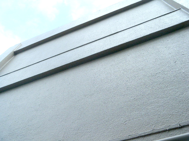 同様にタイル張替だと高額な工事金額になるので、全面、タイル目地埋め、左官仕上げ、外壁塗装にて施工しました。