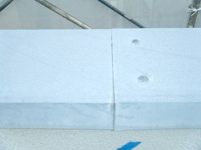 対策:屋根及び棟、点検、スクリュービスにて固定後、シーリングを施工しました。